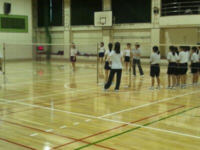 バドミントン部がコーチの指導のもと、一生懸命に練習していました。(副校長)