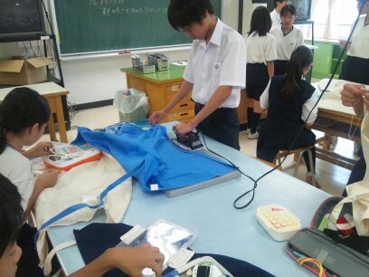 図書室の下の階にある被服室では、家庭科の実習が行われていました。