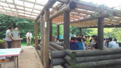 A組は牧場に到着しました。虫が怖い、においがくさい、さすがに都会人ですね。牛についてクイズに答えています。