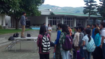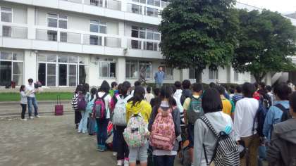 河口湖の学園に着きました。入園式です。今は入浴時間、その後は夕食、ドッヂボール大会です。