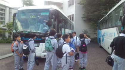 集合写真を撮り、学園を出発しました。天気もよく、みんな元気いっぱいです。