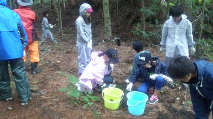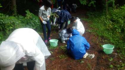 枯れ沢に着きました。さっそく清掃活動です。雨は降っていません。世界遺産の富士山を掃除した経験は、きっと心に残っていくでしょう。