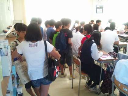 朝早くからたくさんの小学生とその保護者の方々が来てくださっています。(副校長)