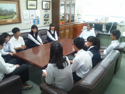 本日、昼休みに新旧の生徒会本部役員と校長先生が懇談会を行いました。