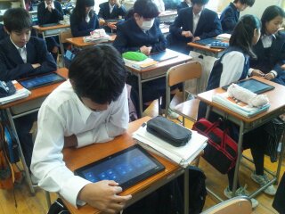 数学では、ひとり1台のタブレットを使い授業を進めていました。