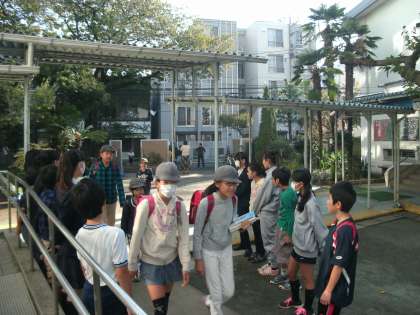 今朝は、生徒会本部役員とJRC部は三軒茶屋小学校に行き、あいさつをしました。