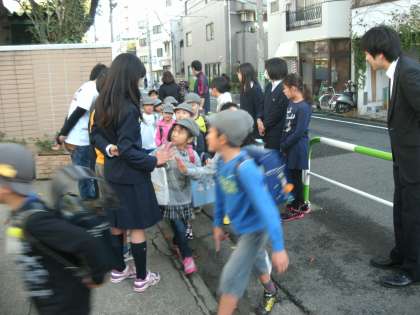 「おはようございます。」の声が三軒茶屋に響き渡りました。(副校長)