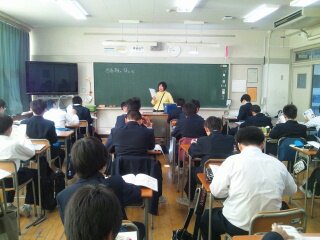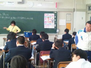養護教諭の菅野先生が「思春期の体と心」というテーマで保健の授業を行っています。