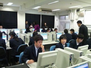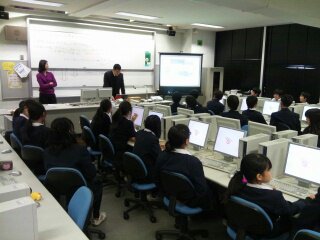 警視庁のサイバー課の方と本校の2年生の教員のティームティーチングで授業を進めました。