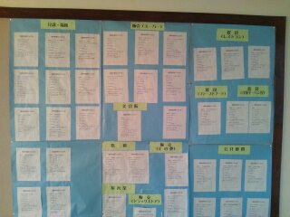3階の廊下には、職場体験で受け入れてくださる事業所や店舗の一覧が掲示されています。