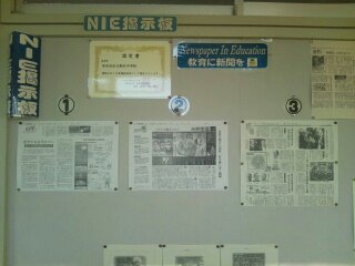 2階印刷室前の廊下には、NIE掲示板とNIEコーナーがあります。