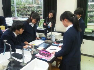 模範実験の動画を各班で見ながら,各班で実験を進めました。