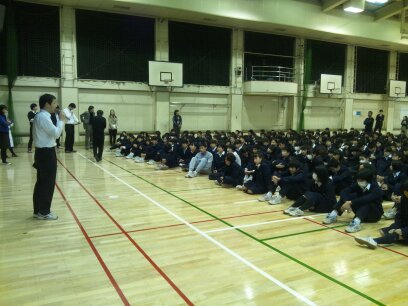 生徒たちも「身の安全」を訓練に参加していました。(副校長)