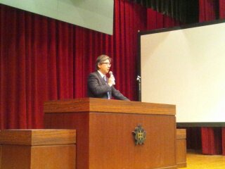 本校も新聞教育には力を注いでいます。ぜひ新聞から多くのことを学んでください。(副校長)