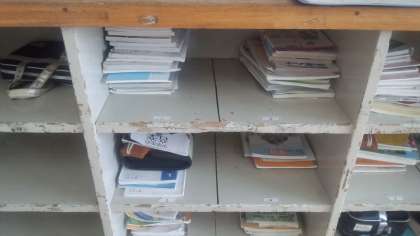 写真左と中央は2年A組の教室です。このクラスでは、道徳の時間に話し合ったことを掲示しています。また、生徒のロッカーの中もたいへんよく整頓されています。とても気持ちのよい教室でした。