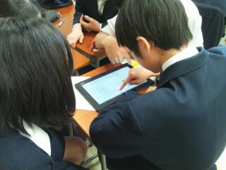 タブレットPCは教室で、話し合いながら進めることができるので