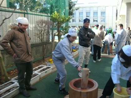 JRC部と生徒会役員が、駒沢小学校域で行われた、新春こどももちつき大会に参加しました。