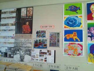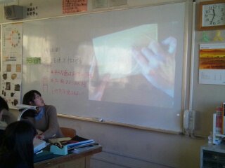 最後に生徒作品を実物投影機で映し、仕上がりのよい部分などを紹介していました。