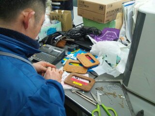 現在、使用しているプラスチックのキーホルダーのいくつかが破損していて怪我につながるかも知れないということで、学校主事の佐藤さんがキーホルダーを木を使って作り直してくれました。
