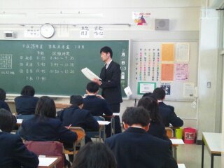 英語の片桐先生がその場で英語を発音し、リスニングテストを行っていました。(副校長)