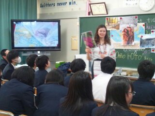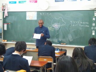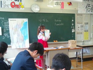 日本に来ている留学生が先生となって、3年生に授業を行っています。