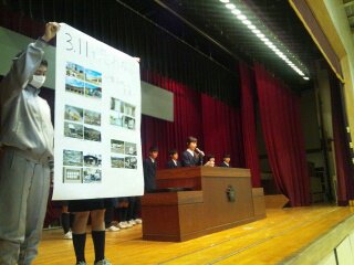 その中で、生徒会役員からは「3・11を忘れない」の生徒会としての取り組みについて話がありました。