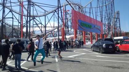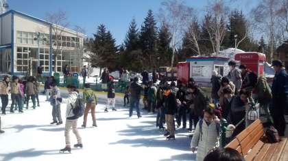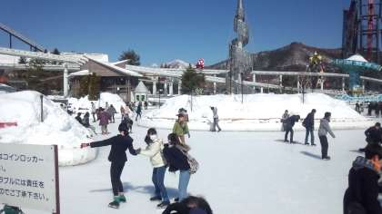 富士急ハイランドスケートリンクに到着しました。何回か転んだ後、みんなすぐにうまくなりますね。すごく楽しそうです。
