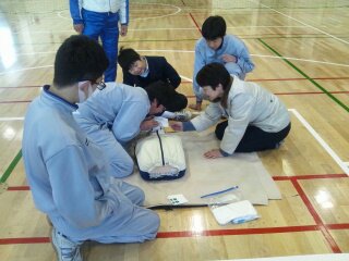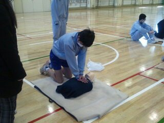 本日、3年生の保健体育で救急救命の授業を行いました。