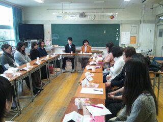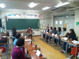 今は全体会が終わり、学級懇談(茶話会)を行っています。