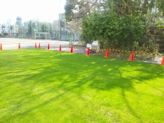芝生の上で寝っ転がって、本を読んだり、昼寝をしたら気持ちよいだろうなあと思いながら、芝生をながめていました。(副校長)
