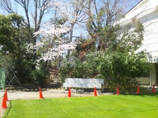 芝生の緑と桜の桃色がマッチしてとてもきれいです。