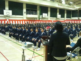 「幸せは皆さんのすぐそばにあります。置かれた環境の中で、一番いいことを自分で見つけていくのが幸せなのです。幸せは待っていても訪れはしません。まず自分と自分の命を大切にし、これから出会う友だちや先輩、先生、地域のたくさんの人たちとの心のつながり、かかわりを大事にして、まずは駒沢中学校という環境の中で、少しでも幸せを感じてくれればうれしく思います。