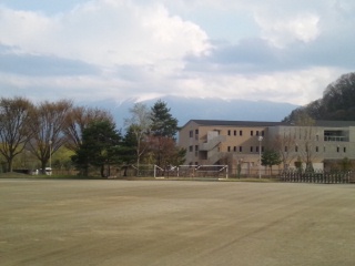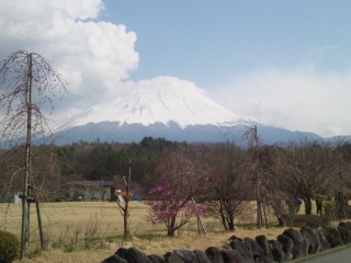 写真は途中で見えた富士山と宿舎から見えた富士山(雲がかかっています)です。(副校長)