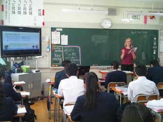 1年生の道徳授業やタブレットPCを活用した数学の授業、ALTの英語の授業、よさこいの練習をしている女子の保健体育の授業を参観しました。