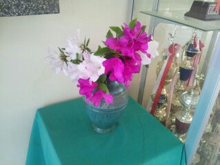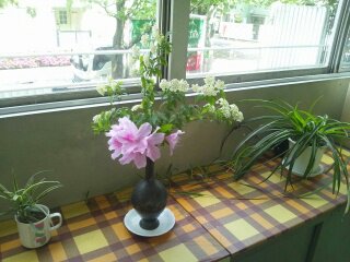 学校主事の竹内さんが来校された方を気持ちよくお迎えしようと生けて、手入れをしてくださっています。