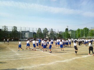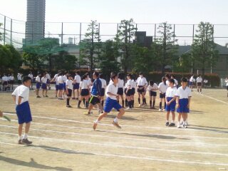 ほとんどのクラスが全員リレーのバトンパスの練習をしていました。