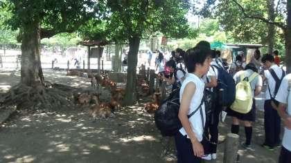 奈良公園に着きました。鹿って思ったより怖い、と話している女子がいました。暑いです。
