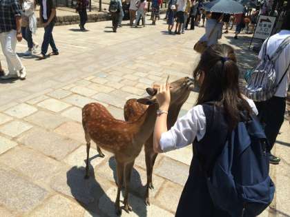 さっそく鹿せんべいを買っている班がいました。