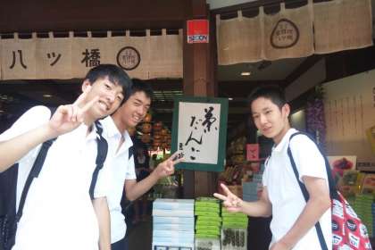 祇園方面です。暑いなかですが、生徒たちは午後の班行動を楽しんでいます。(田村)