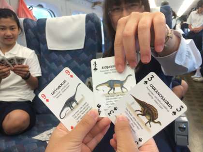 不安定な新幹線の中でも、カードをきるのがみんな上手です。(坂本)