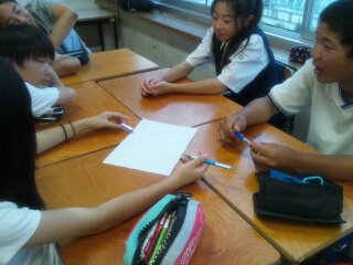 生徒たちはいろいろな意見を出しながら、話し合いを進めていました。(副校長)