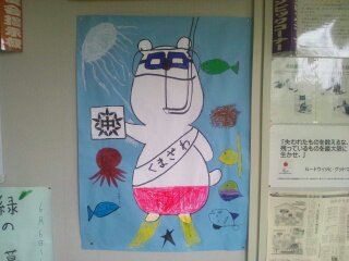 本校の生徒会キャラクターくまざわくんが夏バージョンに衣替えをしました。