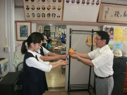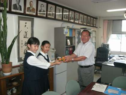 本校の生徒会役員が弦巻小学校と三軒茶屋小学校にびわの実を届けました。