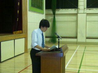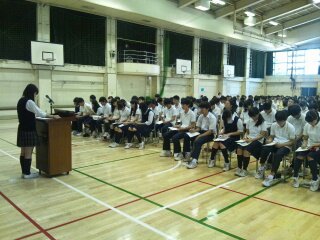 校長先生の「当日の学力試験は攻撃力、内申は守備力です。日頃の授業や提出物、小テスト、定期考査などにしっかりと取り組み、守備力を高めておいてください。」というお話しに続いて、
