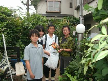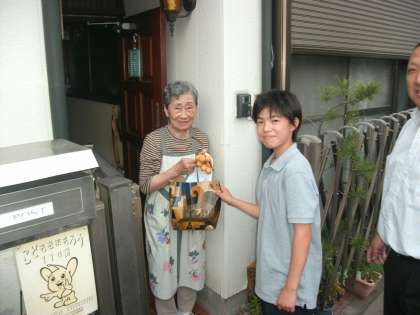 本日は町会の会長さんと副会長さんのお宅へ生徒会役員がびわの実を届けました。
