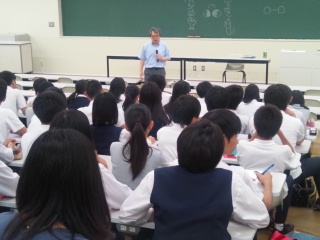 今は大教室で言語学の授業を受けています。(副校長)