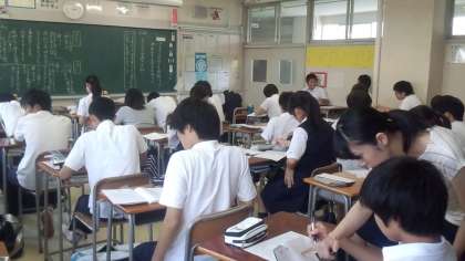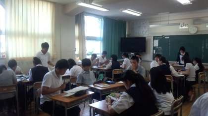 生徒の皆さんは、自分のこととしてとらえながら、意見を発表していました。左と中央の写真はC組、右はB組です。