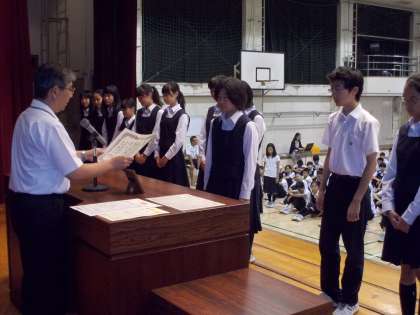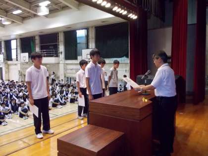 その後、吹奏楽部、卓球部、陸上競技部、漢検の表彰がありました。(副校長)