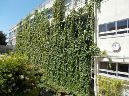 本校の北校舎の南側にはクリーンカーテンがあります。