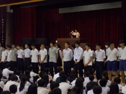 生徒会長をはじめとする全校生徒から激励のことばがありました。